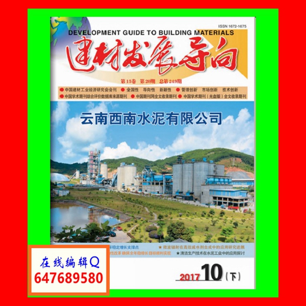 《建材发展导向》杂志是1979年经国家科技部和国家新闻出版总署批准成立的面向国内外公开发行的建材类综合科技期刊。主管单位:云南省建材工业行业协会;主办单位:中国建材工业经济研究会;云南省建材工业行业协会;云南省建筑材料科学研究设计院;云南省硅酸盐学会。国内统一刊号:CN 53-1185/TU;国际标准刊号:ISSN 1672-1675;邮发代号:64-83。主要栏目:高层经论、宏观动向、行业论坛、政策导向、市场导向、装备导向、工作探索、经营管理、科技创新、应用技术、绿色建材、节能减排、墙材革新、建材美学、装饰天地、建材人物、企业风采、交流园地、工会工作等。征稿对象:全国各级科技与管理部门领导、科研院所、教科研工作者、各大院校的在读博士生、研究生及社会各界关心建材行业的人士。
