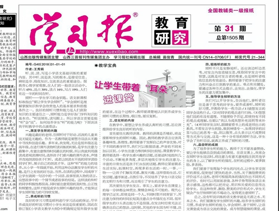 《学习报·教育研究》重点面向全国一线教育工作及教育骨干征稿,论文以教育理论、课改实践、教学研究及管理选题为主。本报被中国核心期刊(遴选)数据库、《中文科技期刊数据库》、中国期刊网数据库、龙源网等权威数据库收录,在本报发表的论文可在职称评定、晋升业绩考核以及岗位竞聘中起到科研认定作用。欢迎各级教育行政主管部门、教育科研院所、各类大中专院校、中小学校及其从事教育教学工作的教育工作者和专业教师等踊跃投稿。